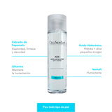 Solución micelar que proporciona que la piel luzca limpia y suave gracias a su formulación con activos no detergentes que eliminan impurezas. Estará protegida del envejecimiento por la acción de su activo extracto de Saponaria Pumilla y con mayor luminosidad e hidratación por su contenido de Ácido Hialurónico, glicerina e isomalt.