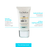 Protector solar frente a fotoenvejecimiento evitando la aparición de arrugas prematuras y la falta de elasticidad. Su fórmula de última generación con extracto de Physalis minimiza el daño producido por LV e IR y gracias a los filtros solares químicos (Homosalato, octinosate, avobenzona y octisalato) protege de la radiación UVB y UVA. Posee una cosmética agradable sin efecto mimo.
