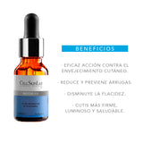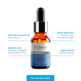 Serum anti age que proporciona piel saludable, resplandeciente y reafirmada, con menos arrugas y menos flacidez, todo ello proporcionado por su formulación de avanzada tecnología con Ultra Clear Resveratrol al 10%, un potente antioxidante que minimiza el daño producido por el estrés oxidativo en la piel y estimula la capacidad antioxidante innata de la piel, sumado a ello contiene colágeno, elastina, y péptidos con acción sinérgica reparadora de la piel.